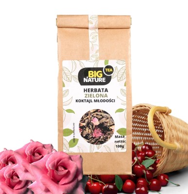 Opis: Opakowanie zawiera 100g zielonej herbaty "Koktajl Młodości".